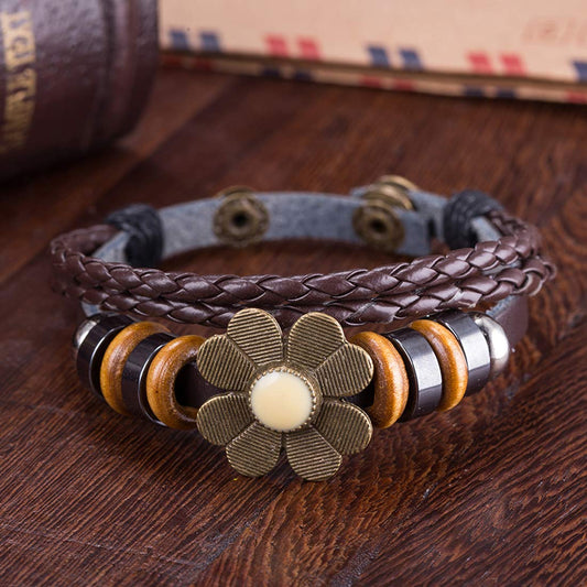 Flower Charm Wrap Brown Bracelet For Women And Girls.
