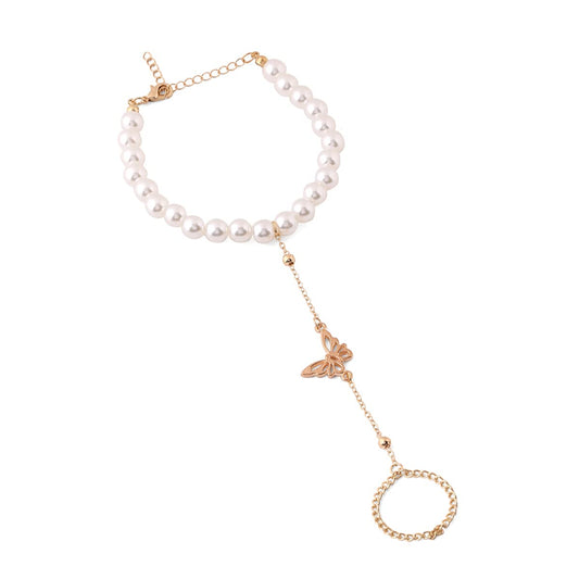 Hand Chain For Women Gold Plated Pearl Butterfly Charm Hand Chain Ring For Women and Girls