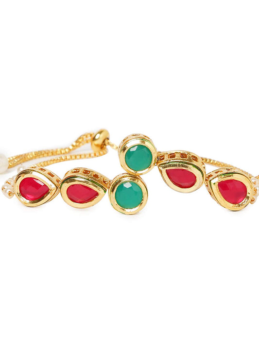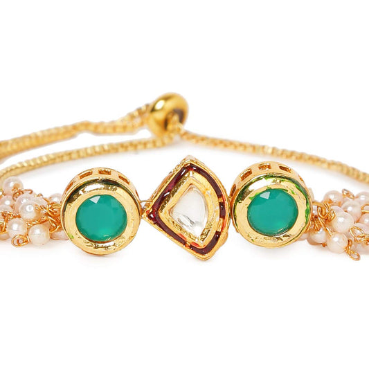 Ethnic Design Gold Plated Handmade Kundan Studded Moti Bandhani Work Bracelet For women & Girls