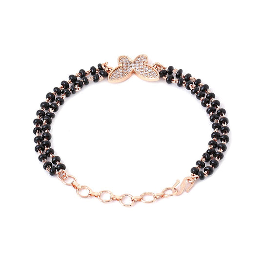 Mangalsutra Bracelet for Women Black Beads Butterfly Charm Rose Gold Plated Hand Mangalsutra Bracelets for Women | Marriage Anniversay Birthday Gift For Wife and Women