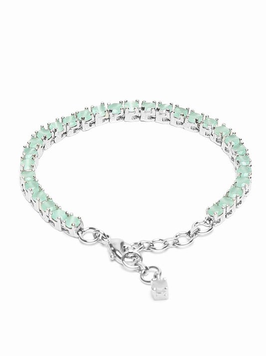 AD Bracelet for Women Sea Green American Diamond AD Studded Rhodium Plated Handcrafted Bracelet for Women and Girls
