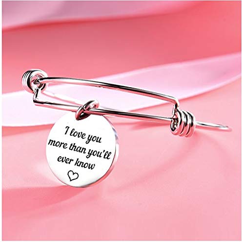 Bracelet for Women Valentine Special I Love You More Than You'll Ever Know Unisex Steel Charm Bangle Bracelet for Women and Girls