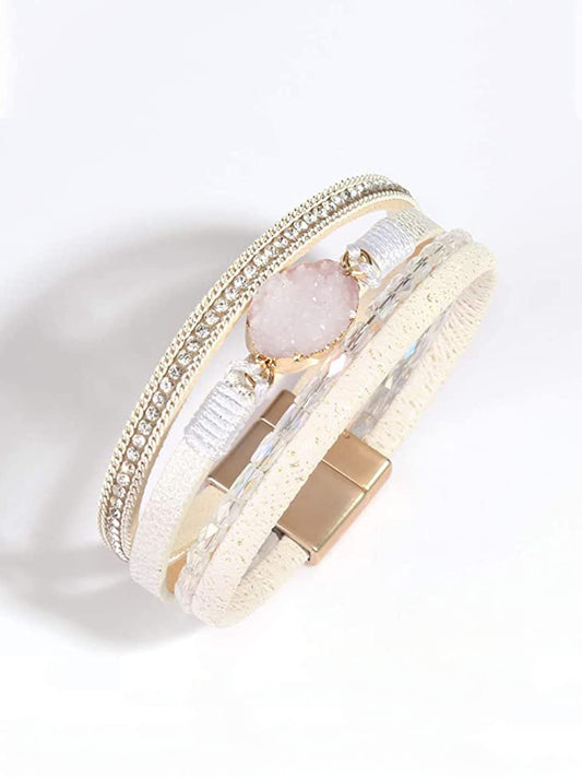 Multilayered Bracelet for Women White Shimmer Textured Layered Wraparound Bracelet For Women and Girls