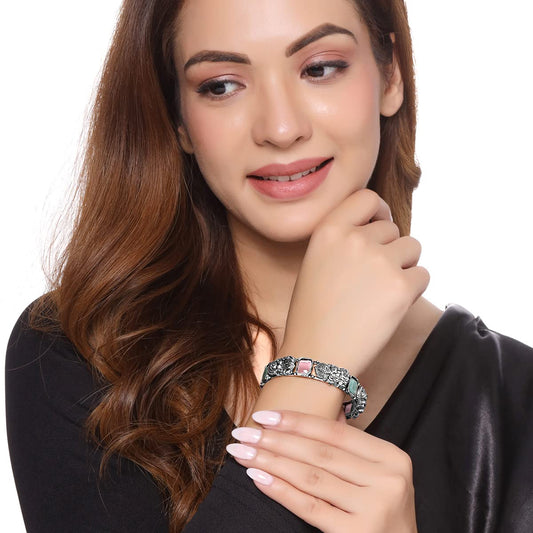 Bracelet for Women and Girls Fashion Silver Kadaa Bracelets for Women | Silver Toned Antique Design Crafted Kada Bracelet | Birthday Gift For Girls and Women