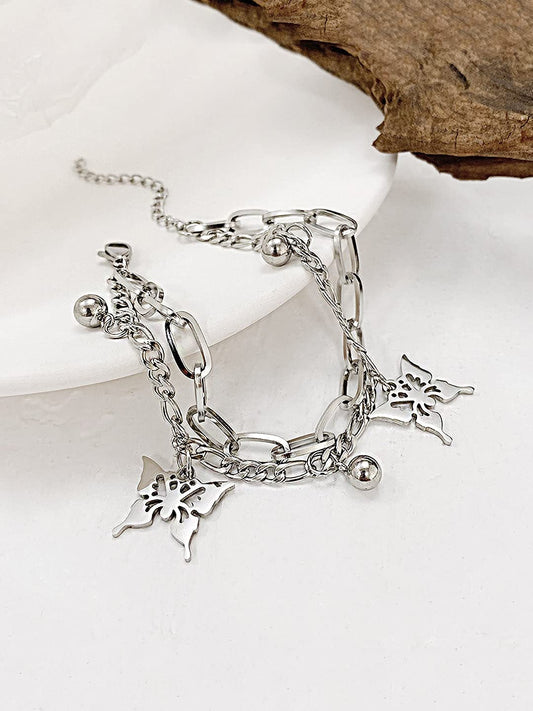Butterfly Bracelet for Women Stainless Steel Adjustable Chain Butterfly Charm bracelet for Women and Girls
