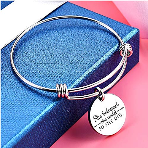 Bracelet for Women She Believed,She Could,So She Did Fashionable Inspirational Message Steel Charm Bracelet for Girls and Women
