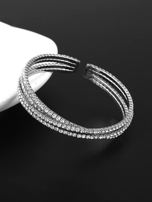 Bangles For Women Silver Toned Multilayer Crystal Bracelet For Women and Girls