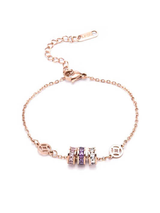 Women Crystal Bracelets | Rose Gold Plated Coin Shaped Bracelets | Multicolor CZ Crystals Bracelet For Woman | Birthday Gift for Girls & Women Anniversary Gift for Wife