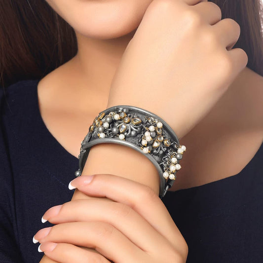 Bracelet for Women and Girls | Silver Oxidised Floral Designed Kada Bracelets for Women and Girls | Birthday Gift For girls and women Anniversary Gift for Wife
