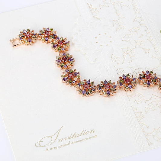 Bracelet for Women and Girls Multicolor Crystal Style Bracelets for Women and Girls |Floral Shape Gold Plated Bracelet| Birthday Gift For girls and women Anniversary Gift for Wife