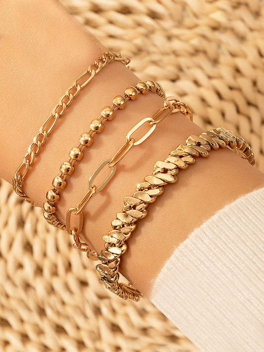 Combo Bracelets for Women Set of 4 Gold Plated Stack Chain Bangle Bracelet Set for Women and Girls