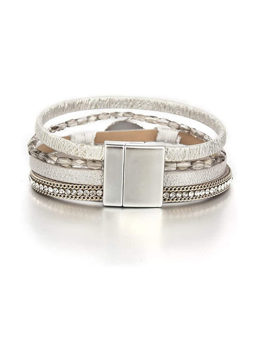 Multilayered Bracelet for Women Silver-Toned Shimmer Textured Layered Wraparound Bracelet For Women and Girls