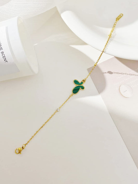 Bracelet for Women Stainless Steel Gold Plated Green Butterfly Charm Bracelet for Women and Girls