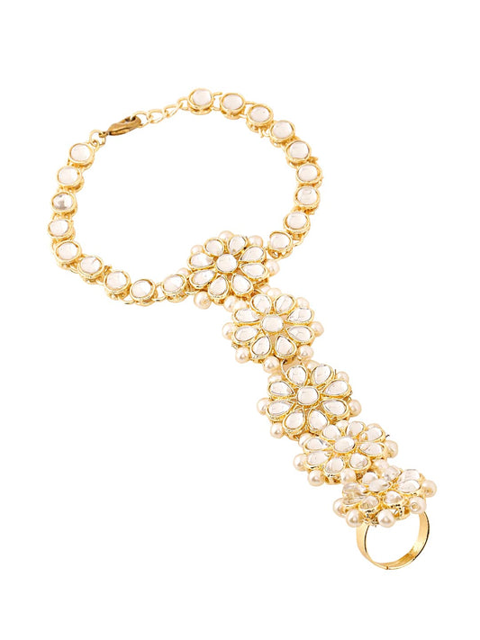 Haath Phool for Women Ring Bracelet Kundan Studded Traditional Gold Plated Panja/Adjustable Rings Bracelet for Women and Girls