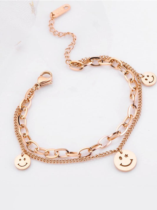 Charm Bracelet for Women Rose Gold-Plated Stainless Steel Link Chain Smiley Charm Bracelet For Women and Girls