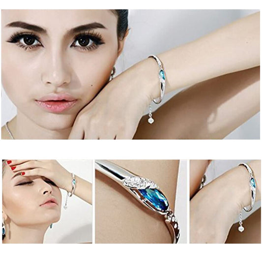Bracelet for Women and Girls | Fashion Blue Crystal Silver Tone Crystal Bracelets for Women and Girls | Accessories Jewellery for Women | Birthday Gift for Girls and Women Anniversary Gift for Wife
