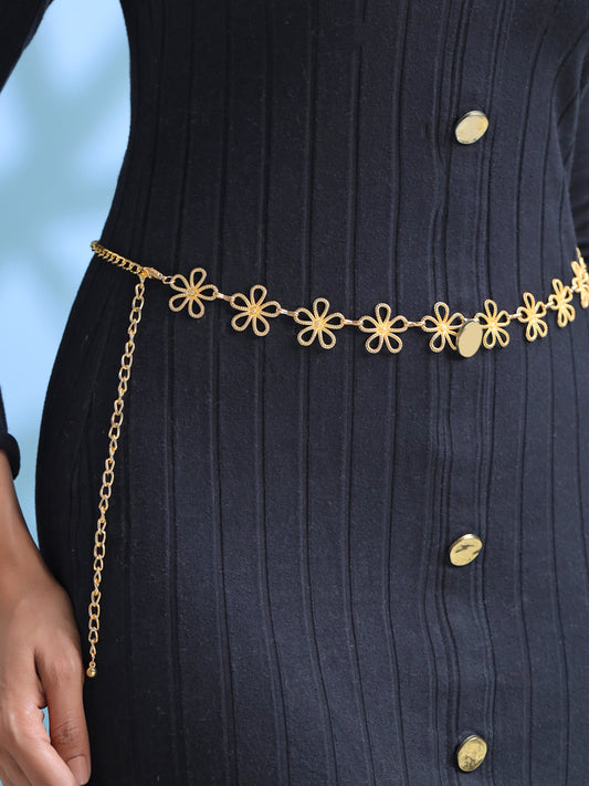 Gold Plated Floral Belly Chain: Adjustable Waist Chain for Women