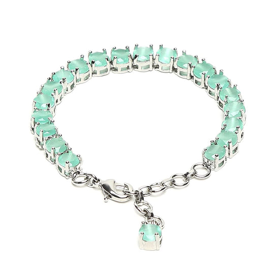AD Bracelet for Women Green American Diamond AD Studded Rhodium Plated Handcrafted Bracelet for Women and Girls