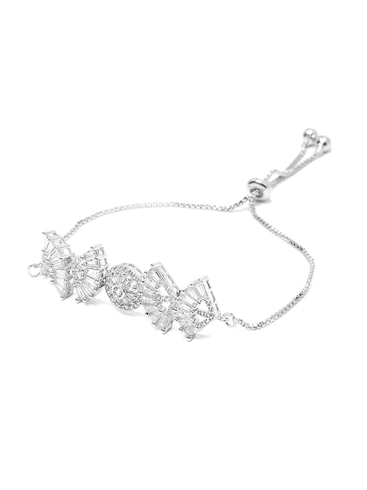 AD Bracelet for Women Rhodium-Plated White American Diamond AD-Studded Circular Chain Bracelet For Women and Girls
