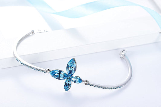 Blue Butterfly White Gold Plated Charm Bangle Bracelet for Women and Girls