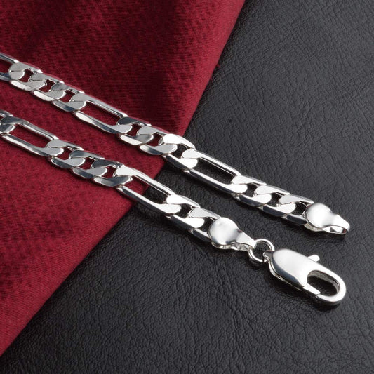 Bracelet for Men Silver Toned Figaro Chain Bracelet for Men and Boys