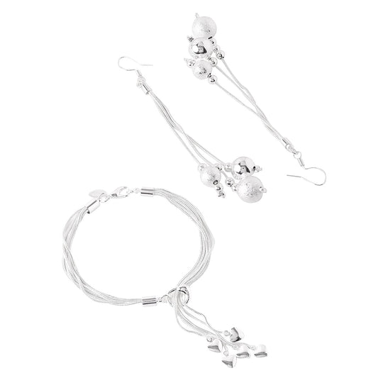 Silver Earrings Bracelet Set for Women Hanging Love Heart Charm Bracelet Silver Plated Tassel Earrings Bracelet Set for Women and Girls.