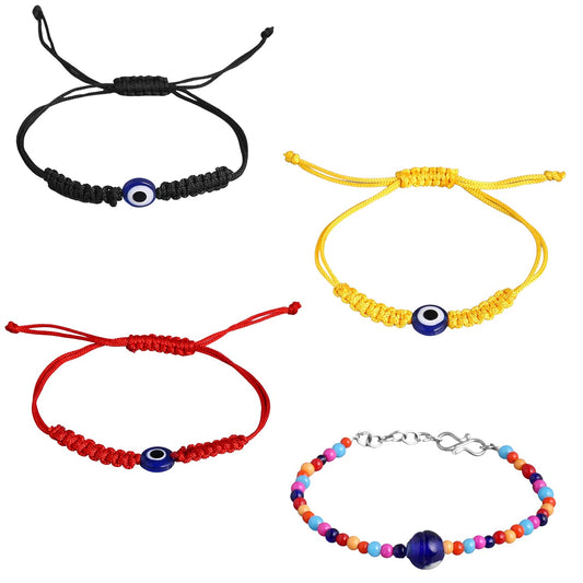 Evil Eye Bracelet for Women 4 Pcs Combo Evil Eye Multicolor Beads Bracelets Stretchable Threaded Bracelets for Women and Girls.