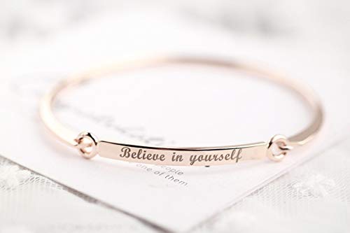 Classic Fashion Engraved Beliver In Yourself inspirational message Rose Gold Plated Kadaa Bracelet For Men and Women