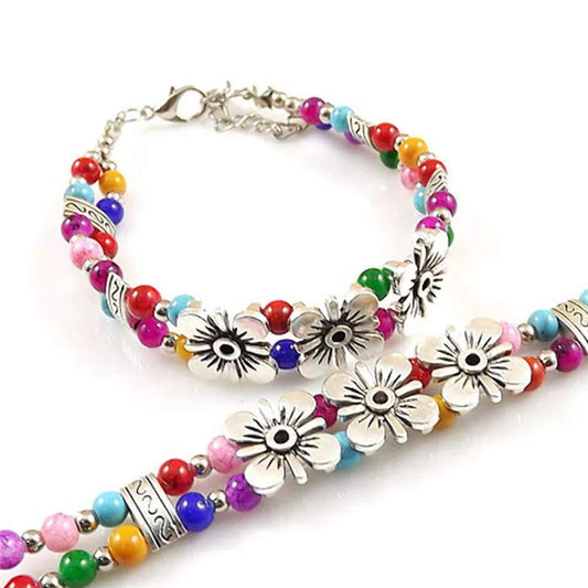 Classic Handmade Ethnic Floral Design Bohemian Multicolor Beads Vintage Bracelet For Women and Girl's