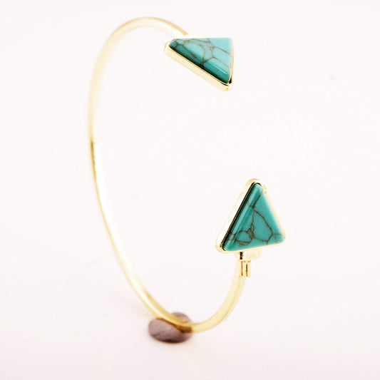 Retro Vintage Open Bangle Triangle Blue Turquoise Stone Cuff Bracelet For Women and Girl's