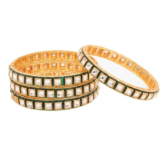 Classic Design White Kundan Studded 4 PCs Traditional Gold Plated Bangles Set for Women and Girls (2.6)