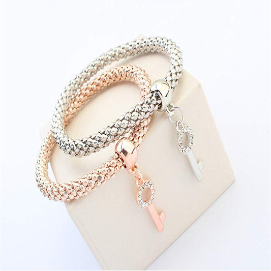 Lock and Key Charm Set of 3 Bracelets For Women And Girls.