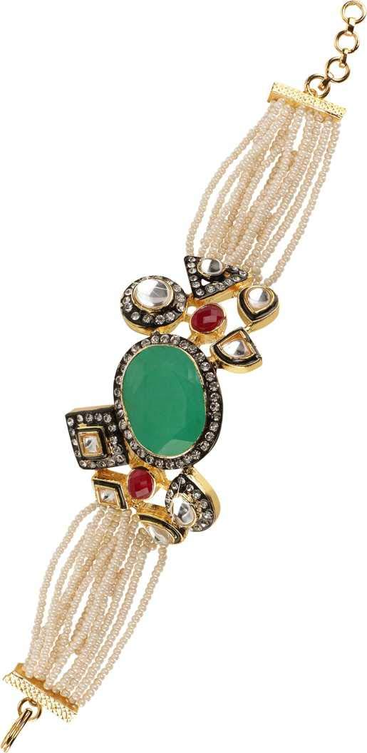 Traditional Kundan Moti Stylish Gold Plated Bracelet for Women and Girls