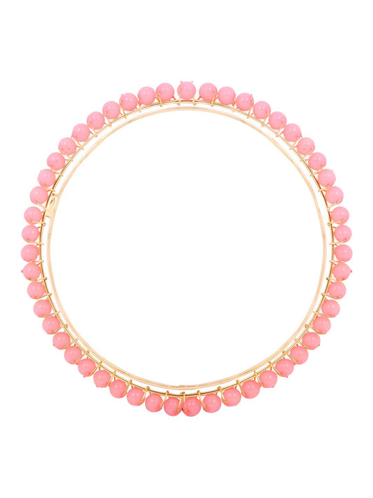 Classic Design Handcrafted Beads Studded Gold Plated 4 Pcs Pink Beaded Bangles Set For Women & Girls (2.4)
