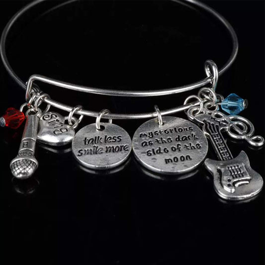 Exclusive Design Music Gift Guitar Microphone Engraved Messages Music Speaks Charm Bangle Bracelet For Women and Girls