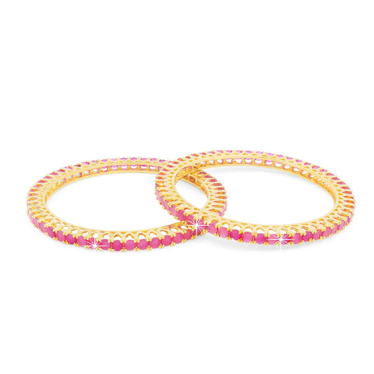 Elegant Ruby AD/American Diamond Studded 18k Gold Plated Classic 2 PCs Handcrafted Bangles Set for Women & Girls (2.6)
