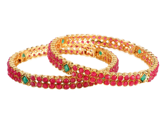 Ruby Stones 2 PC Bangle Set Traditional Gold Plated Bangles for Women and Girls