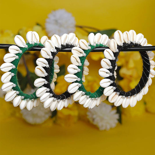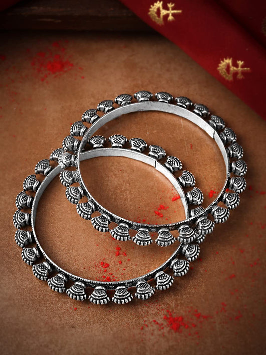 Womens Bracelets Oxidised Silver Combo Of 2 Kolhapuri Bangles Shell Design Bangles For Women & Girls