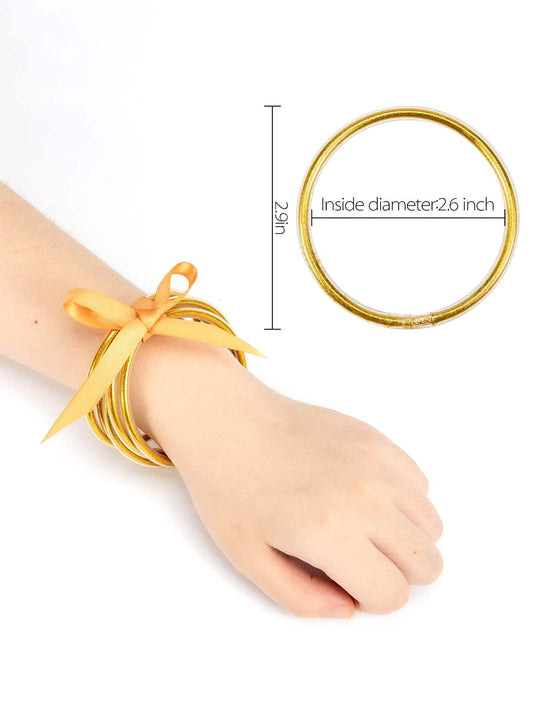 Glitter Bangles for Women Gold Glitter filled Jelly Silicone Bangles Set for Women and Girls