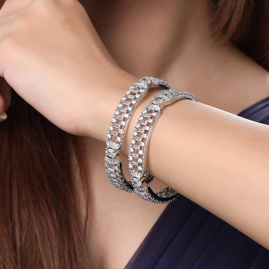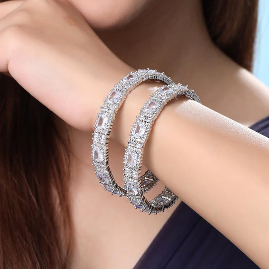 Bangles for Women and Girls American Diamond Bangles for women | Silver Tone White AD Studded Bangles for girls | Birthday Gift For girls and women Anniversary Gift for Wife