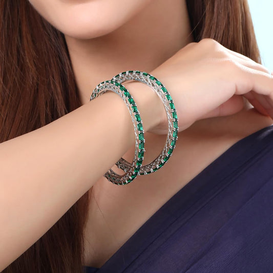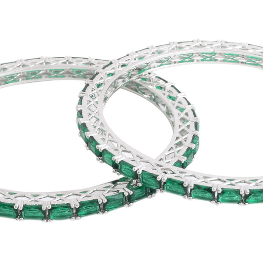 Bangles for Women and Girls American Diamond Bangles for women | Silver Tone Green AD Studded Bangles for girls | Birthday Gift For girls and women Anniversary Gift for Wife