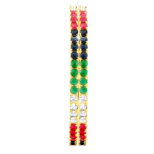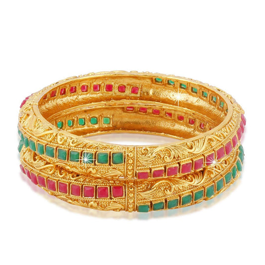 Classic Design Studded Stones 2 PCs Traditional Gold Plated Bracelet Bangles Set for Women and Girls (2.8)