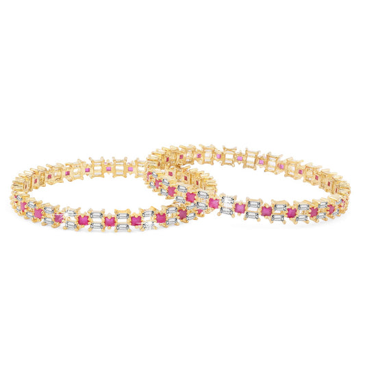Elegant Set of 2 Pcs Pink AD/American Diamond Studded 18k Gold Plated Handcrafted Designer Bangles for Women & Girls (2.8)