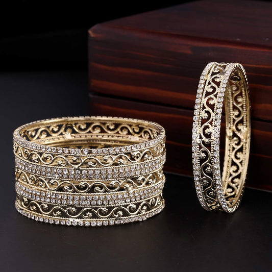 Gold Plated Crystal Studded Designer Traditional 4 Pcs Bangles Set for Women and Girls (2.8)