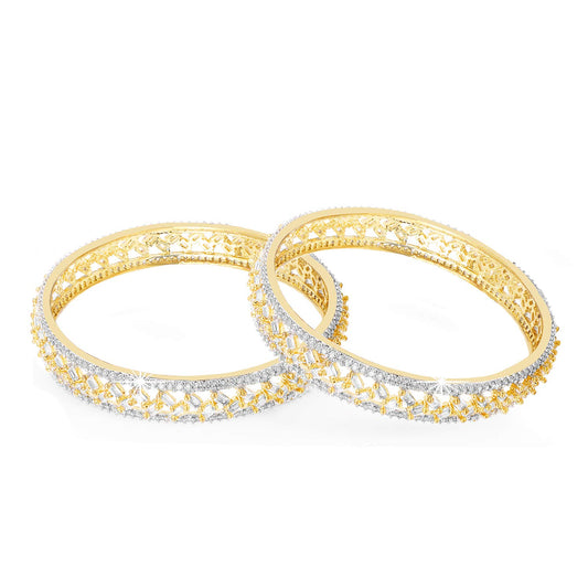 Classic Design Set of 2 Pcs White AD/American Diamond Studded 18k Gold Plated Handcrafted Bangles Set for Women & Girls (2.8)