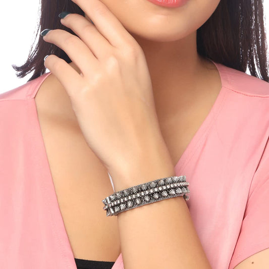Oxidised Bangle for Women Traditional Oxidised Silver Plated Ethnic Design Openable Bangle for Women and Girls