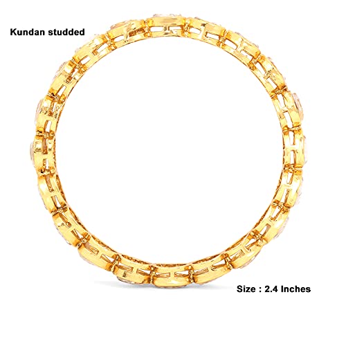 Classic Design White Kundan Studded 4 PCs Traditional Gold Plated Bangles Set for Women and Girls (2.6)