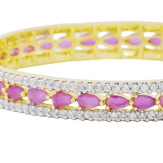 Elegant Pink AD/American Diamond Studded 18k Gold Plated Designer Handcrafted 1 PCs Bangle Bracelet for Women & Girls (2.6)