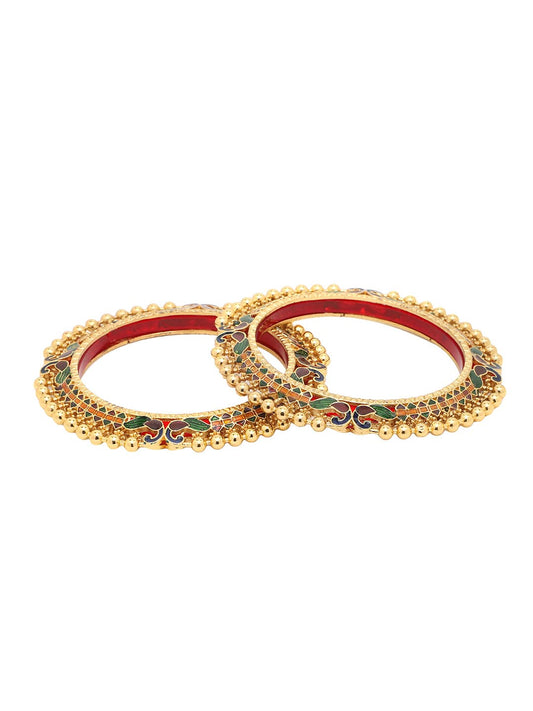 2 PCS Exclusive Delicate Plain Meenakari Touch Antique Gold Plated Traditional Bangles For Women And Girls (2.4)