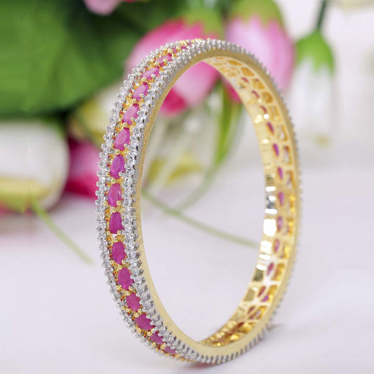Elegant Pink AD/American Diamond Studded 18k Gold Plated Designer Handcrafted 1 PCs Bangle Bracelet for Women & Girls (2.8)